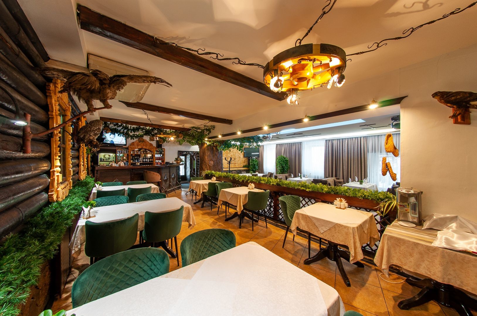 Просторное помещение ресторана с оригинальным интерьером вместит до 70 гостей. В качестве дополнительных услуг сотрудники ресторана сделают красивый декор в тему вашего торжества.